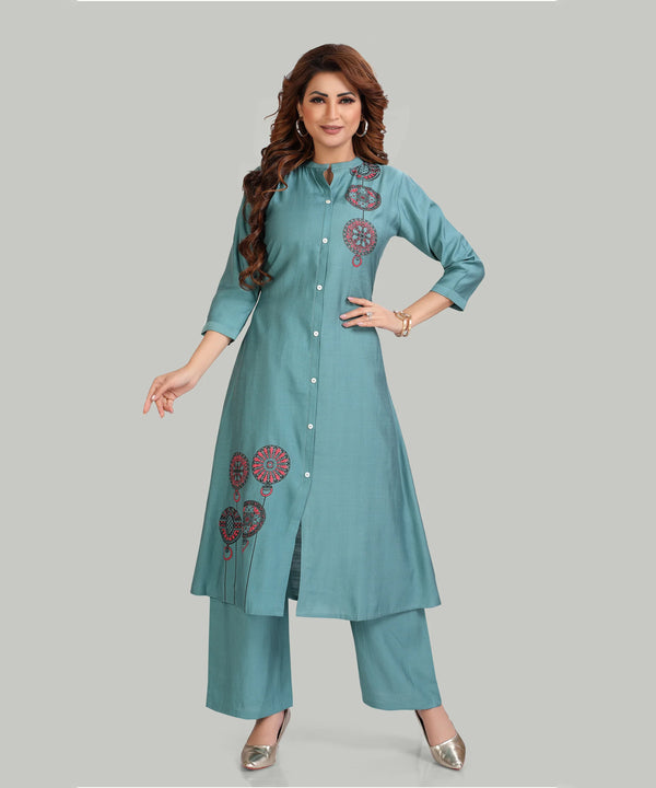 Elegant Teal Kurta Set with Artistic Mandala Print